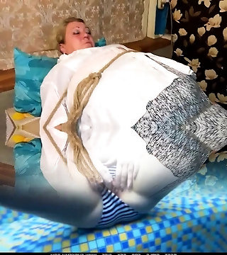 French BBW mature slave tied up in a hot bondage & discipline hook-up clip