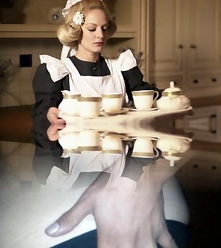 Mature blonde maid is wearing uniform and tearing up her employers sonnie, because it feels so good