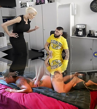 Short haired blonde babe Tanya Virago plows her employee in the office