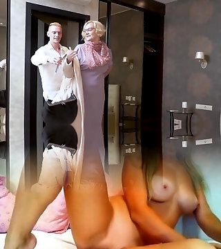Blonde grandmother with good-sized glasses getting shagged by the rich dude