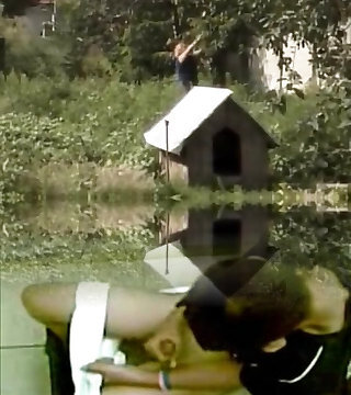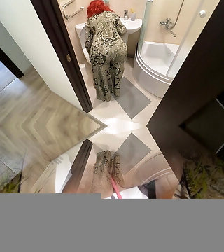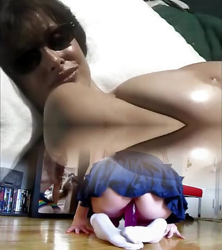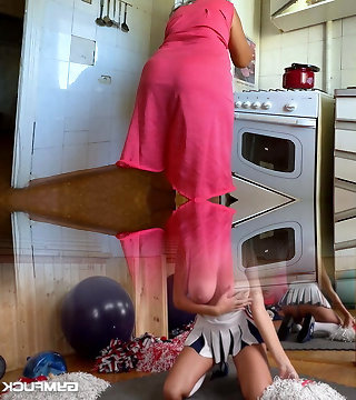 Quirky sexy fun hippy step-mom plays with her mammories and belly whilst exercising on a static bike