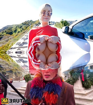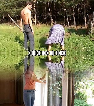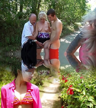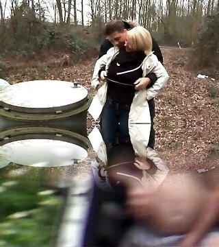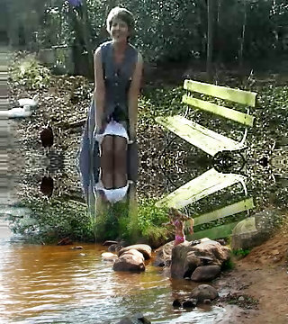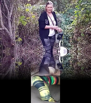 MILF beautiful blonde sexy Frina picks mushrooms in forest and left behind to wear panties. Without undies. No panties upskirt. Nude in public. Outdoor. Outdoors. Outside
