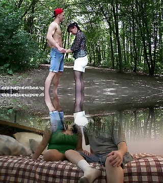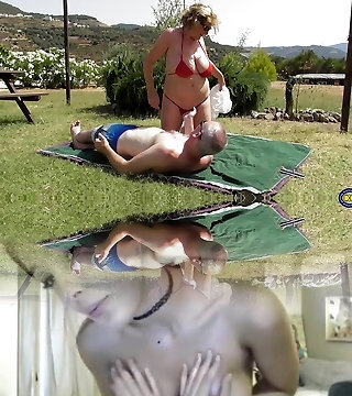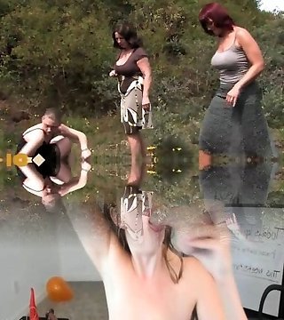 Spycam spying on mature lesbians with big butts outdoors. Chubby mummies wash near the river in nature. Amateur fetish and PAWG. Nudism and exhibitionism.