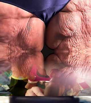 Agreeable Granny In Dark Hose Frolicking On The Steps